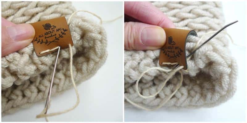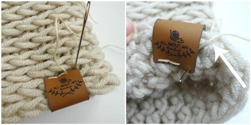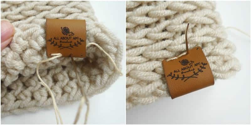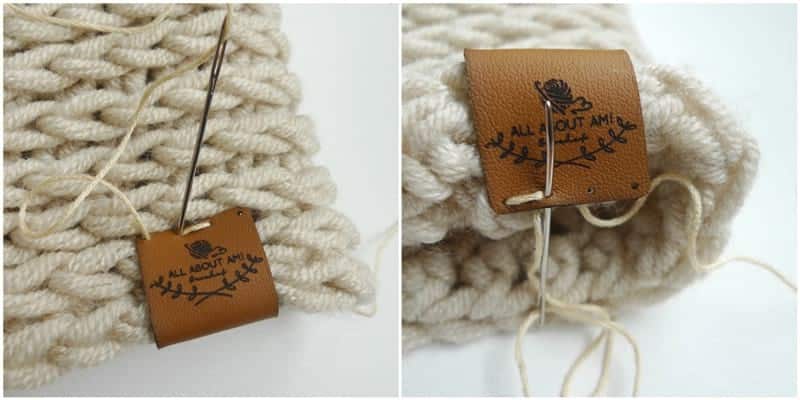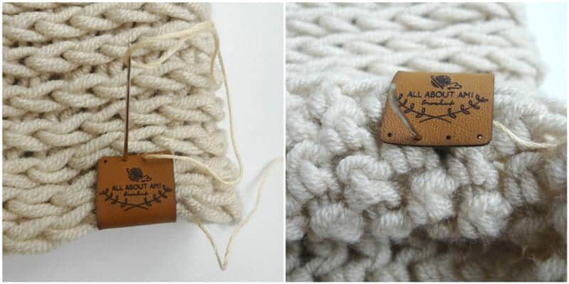- Positionnez l’étiquette de façon stratégique : par exemple, le petit décalage qui apparaît parfois en début de bonnet tricoté peut être masqué astucieusement sous l’étiquette.