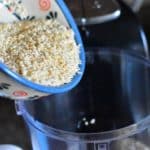 - Placez les graines grillées dans un mixeur. Mixez, raclez les parois régulièrement pour éviter les amas, et poursuivez jusqu’à l’obtention d’une pâte.