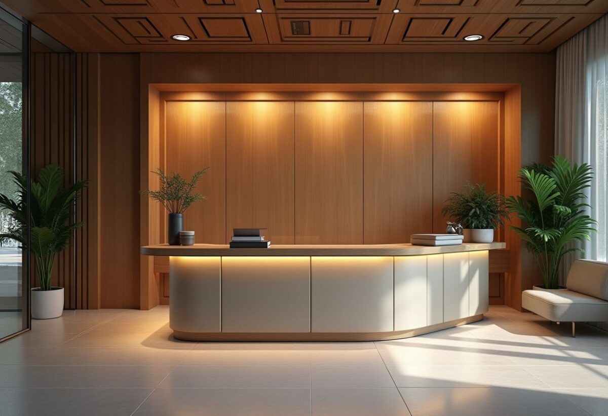 Le design de l’accueil est fondamental pour l’expérience des visiteurs. Une banque d’accueil moderne et ergonomique, associée à des éléments décoratifs et un éclairage adéquat, peut transformer un simple espace en un lieu accueillant et confortable. Intégrer des technologies modernes, comme les écrans interactifs, et des matériaux écologiques peut également montrer l’engagement de l’entreprise envers l’innovation et la durabilité.