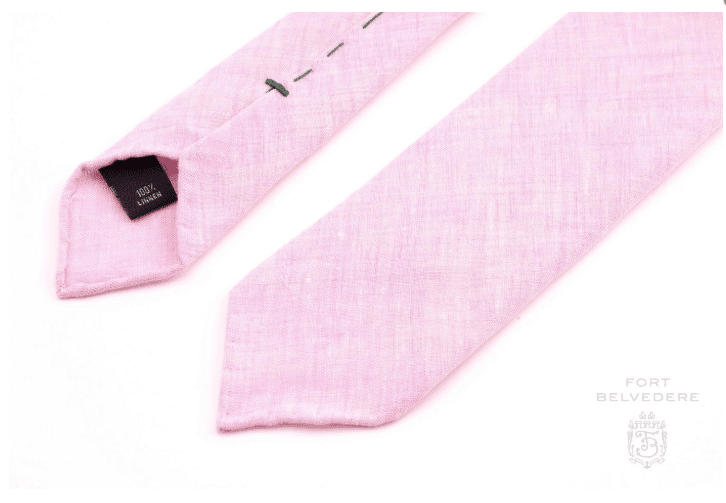 On peut aussi choisir une pochette majoritairement rose avec un liseré blanc ou crème. Côté cravate, évitez les textures brillantes. Une cravate en soie imprimée associant plusieurs couleurs (motifs géométriques, rayures) se marie mieux qu’un rose uni trop éclatant. Pour l’été, les cravates en lin ou en soie brute (shantung, tussah) apportent de la subtilité grâce à leur aspect mat.