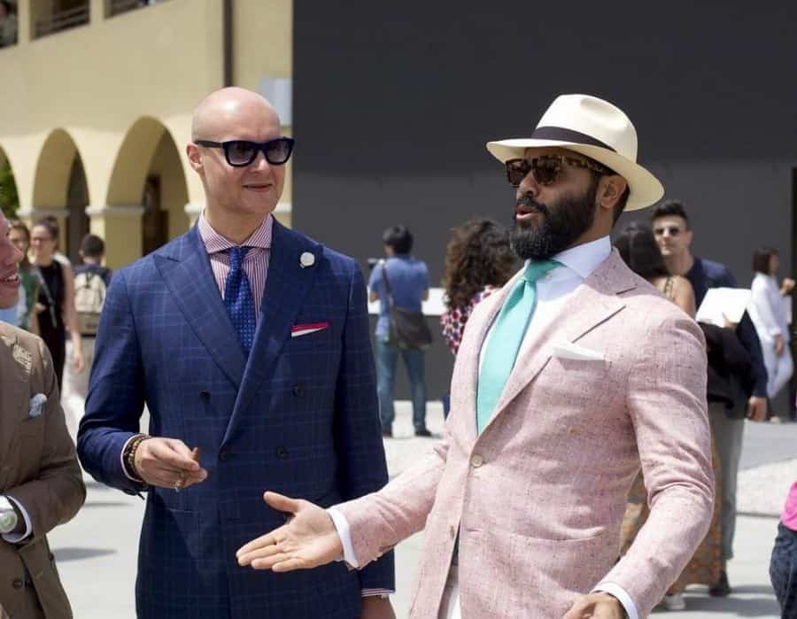 Pour une chemise ou une veste, le choix de la nuance dépend aussi du teint. Les peaux mates s’accommodent de presque tous les roses. Les carnations claires, elles, gagnent à porter le rose avec un léger hâle, pour éviter que la couleur ne fasse ressortir les rougeurs du visage. Le rose s’apprécie donc pleinement sous le soleil, mais rien n’interdit de l’adopter avec discernement hors saison.